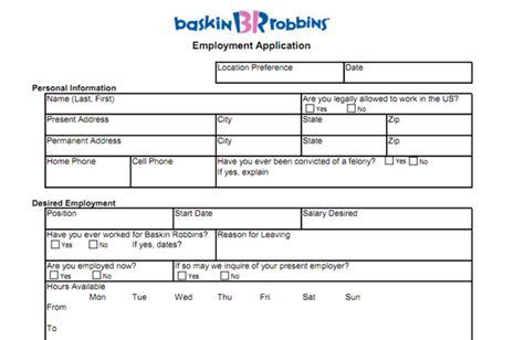 Baskin Robbins Application Print - Or any of its affiliates. Let's get straight to the pint, we want you. If hired, the franchisee will be your. A baskin robbins employment application, or baskin robbins job application, is a document used by job applicants in order to apply for a job at a baskin robbins ice cream parlor. 14 years old (how old do you have.